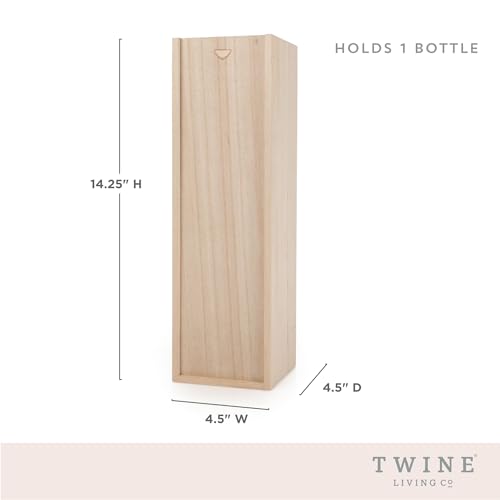 Twine - Twine Marketplace Single Bottle Wooden Wine Box, Hardwood, Silver, One Size