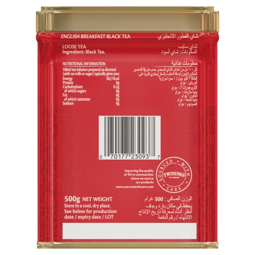 Twinings - أوراق شاي سائبة من تواينينجز بنكهة الإفطار الإنجليزي، عبوة 500 جرام