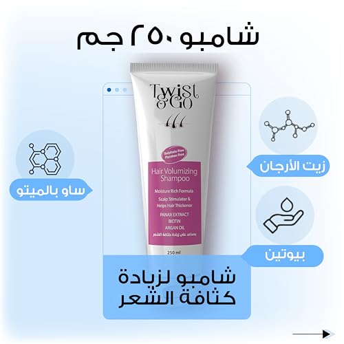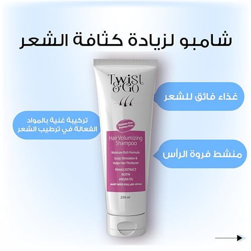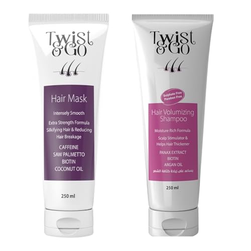Twist & Go - Twist & Go Volumizing Shampoo 250 Ml + Twist &Go Hair Mask Cruelty Free 250 ML - Deeply Moisturizing - With Biotin and Panax - Deep Cleansing - Promoting Hair Growth Reducing Hair Loss - Paraben Free
