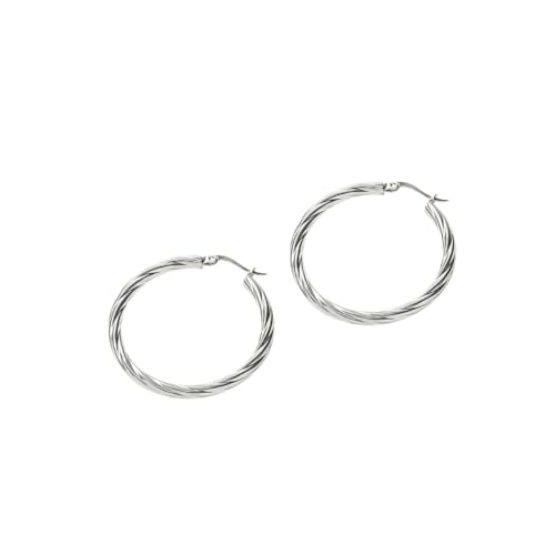 Generic - Twisted Sterling Silver Hoop Earrings, Large Round Design