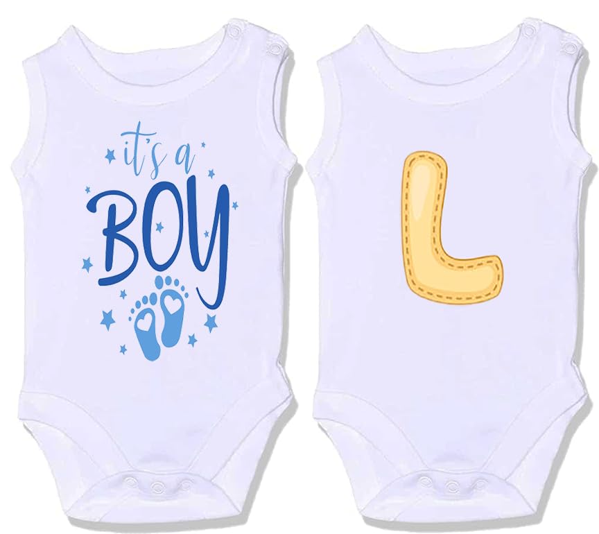Generic - Two 100% cotton bodysuits with distinctive shapes for newborn SALOPETTE CUT babies ITS A BOY(L)