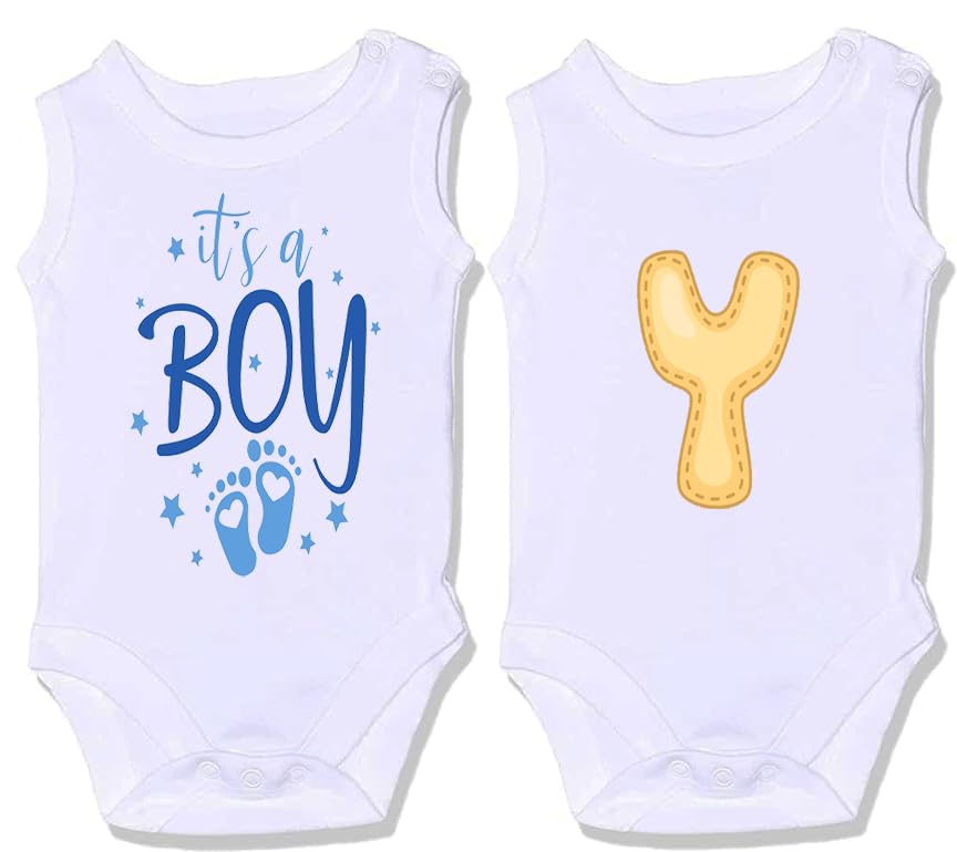 Generic - Two 100% cotton bodysuits with distinctive shapes for newborn SALOPETTE CUT babies ITS A BOY(Y)