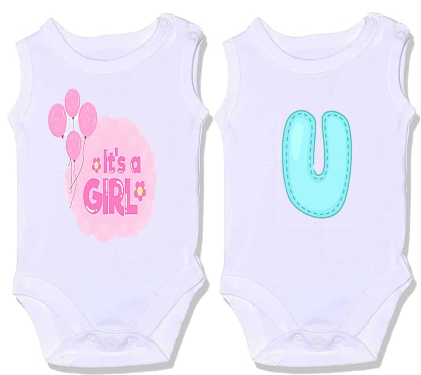 Generic - سالوبيت بكباسين مصنوع من القطن بنسبة 100% بأشكال مميزة بتصميم عبارة (ITS A GIRL) وحرف (U) للأطفال البيبي