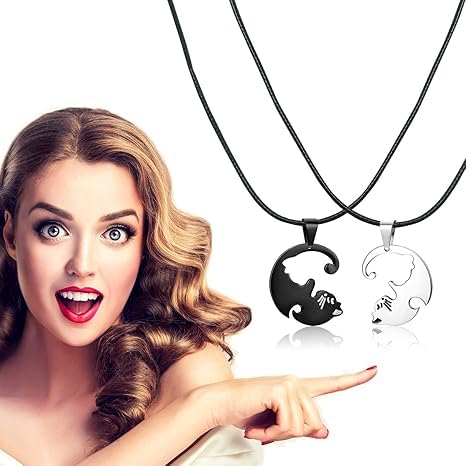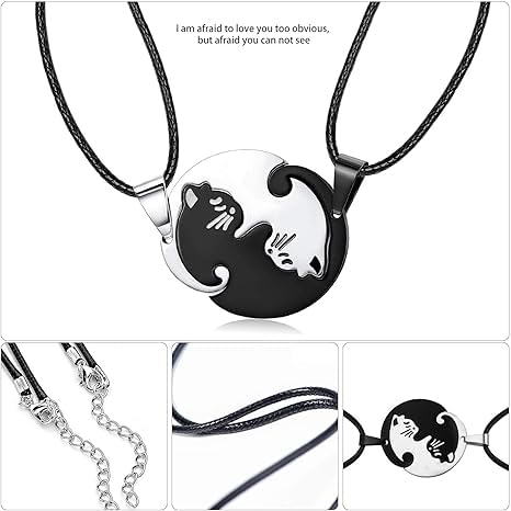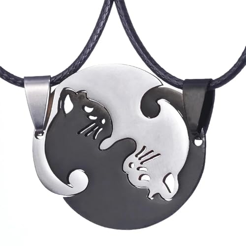Generic - Two Necklace Cat Yin and Yang puzzle Couple Two Souls One Korean Fashion Men Women Teen Girls, Friendship -2 Pcs Black &Silver