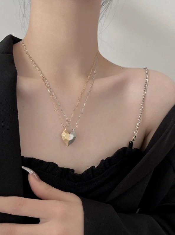 Generic - Two Necklace Magnetic Couple Two Souls One Korean Fashion Men Women Teen Girls -2 Pcs White &Gold Magnetic