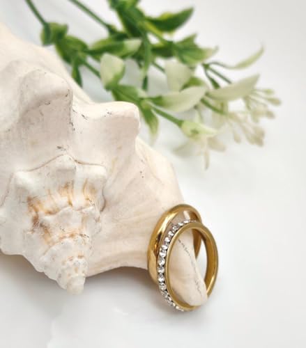Generic - Two Piece Ring L a m y Crystal Style Gift For Women Fashion Day Wife Lover Family Member Stainless Steel 18K gold Plated - Ring 17 Size
