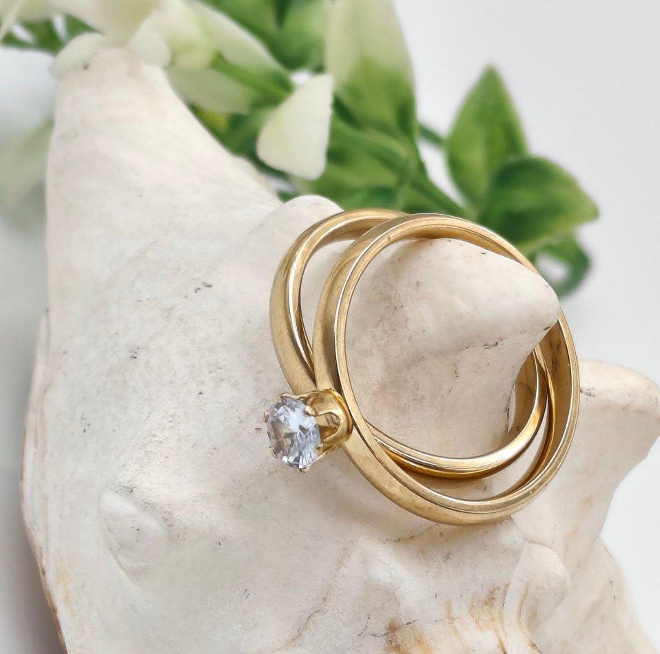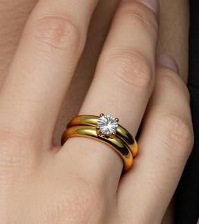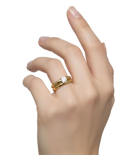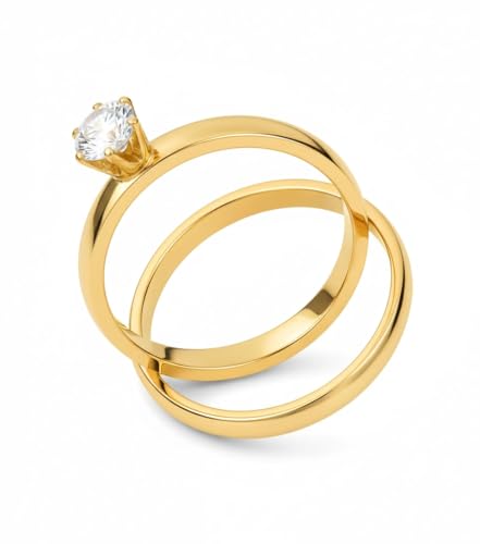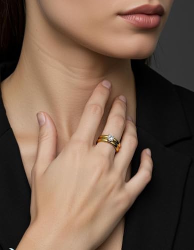 Generic - Two Piece Ring P A V O N E Cubic Zircon Style Gift For Women Fashion Day Wife Lover Family Member Girlfriend Stainless Steel 18K gold Plated Valentine's Day - Ring 17 Size