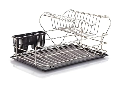 - Durability is supported by a strong steel wire frame and a chrome plated stainless steel finish described as rust-proof, with claims of no rust material and protection for dishes from chips and scratches during repeated drying cycles.