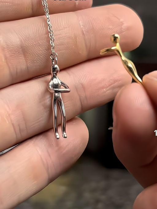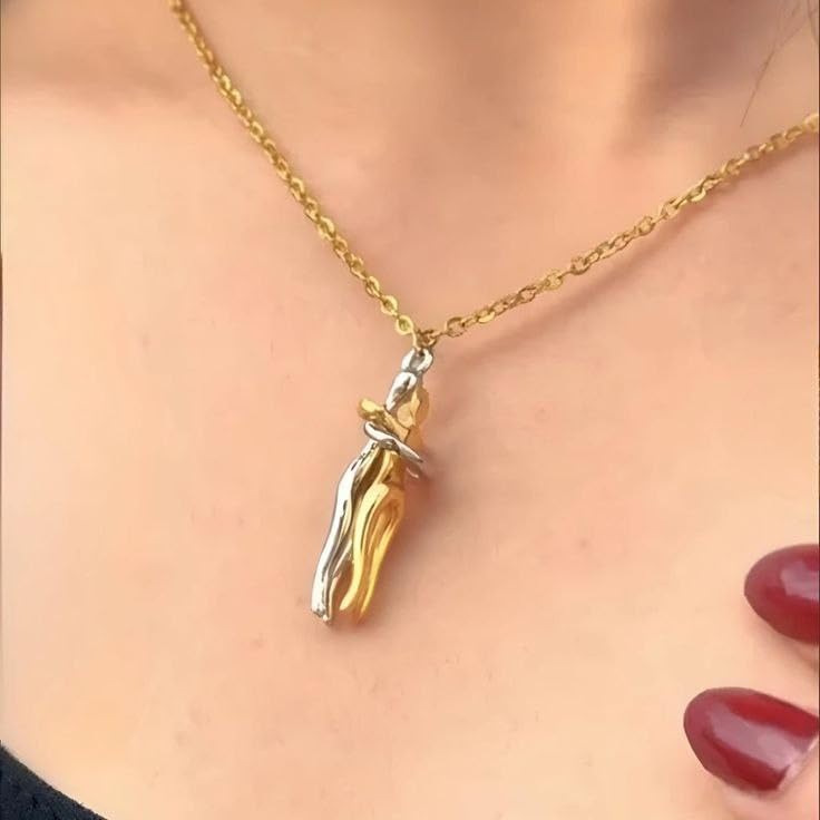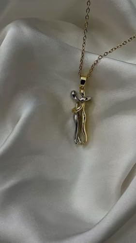 Generic - Two-Tone Embracing Couple Pendant Necklace, Gold and Silver, Romantic Love Design