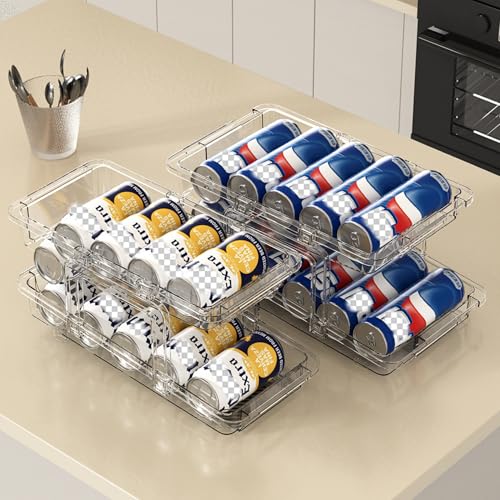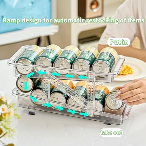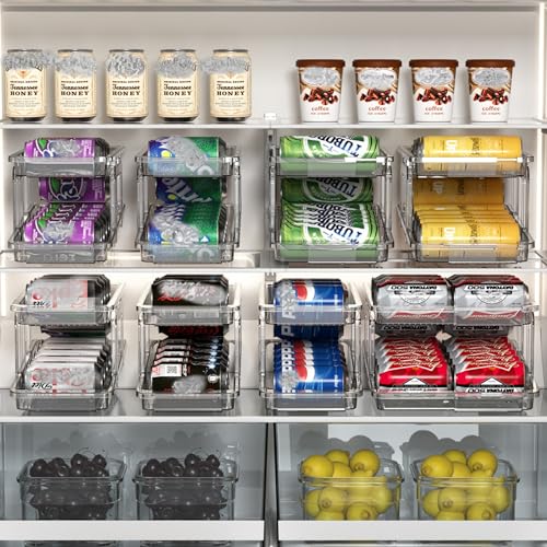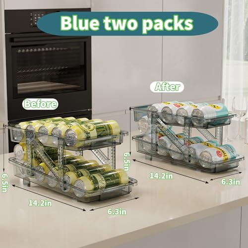YERTAA - Two water bottle holder (Blue)Soda Can Organizer for Refrigerator Stackable Can Holder Dispenser with Lid for Fridge, Refrigerator organizers and storage. Pantry,Freezer – Holds 12 Cans Each, BPA-Free