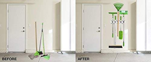 - Best Quality: Made of high quality plastic material, sturdy and durable. This mop and broom magic organizer’s slots feature spring controlled balls which automatically adjust to the handle's size.