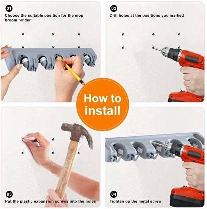- Easy to Install Included with wall mounted broom holders are all the stainless steel screws and anchors,along with clear step-by-step instructions that allow even the clumsiest of us can install easily in just minutes