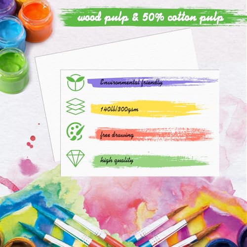 - Designed To Endure: Watercolour paper 300gsm acid free that means there will be no yellowing of the paper over time,water colour paper can withstand heavy use and is not easy to break,cotton watercolour paper is also able to withstand scraping,erasing and repeated washes whilst colours remain vibrant.