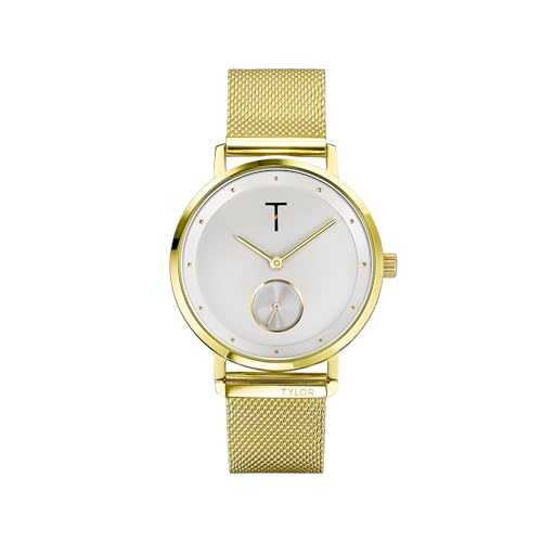 Tylor - ساعة سيف من الستانلس ستيل للنساء تايلور TLAJ007 مقاس 34 ملم ذهبي-ابيض تناظري