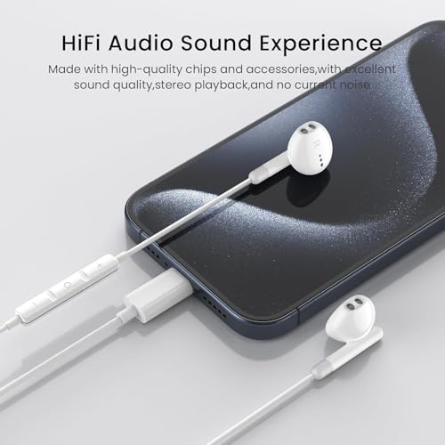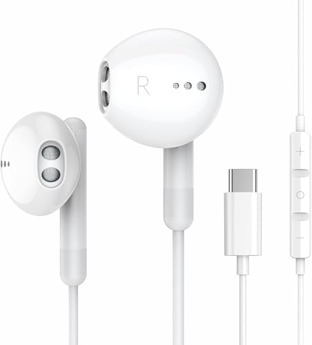 - COMFORTABLE IN-EAR: Designed as half-in-ear ergonomic shape and lightweight body, don t block all outside noise, For iPhone 15 Earphones Included Anti Drop Earplugs, ensure the headphones snugly fit. Anti-wrap oxygen-free copper wire inside provides the whole earphones flexibility to get through backpack clothes while moving outside activities. Come with Storage Case, keep the usb c earphones safe and extremely portable,so Type C Headphones provide you secure and comfortable wearing experience