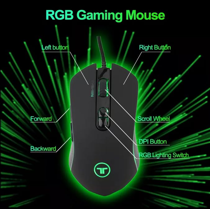 Tyshen - MSG-M12 RGB Gaming Mouse - 3,800 DPI - Optical Sensor - 7 Buttons - Black