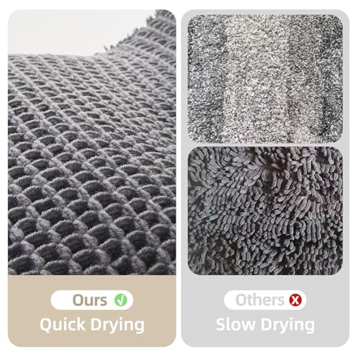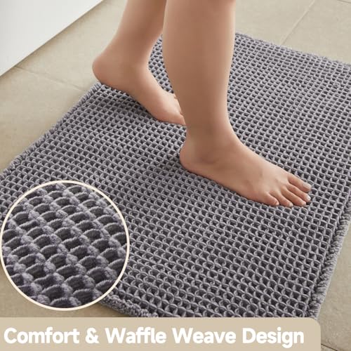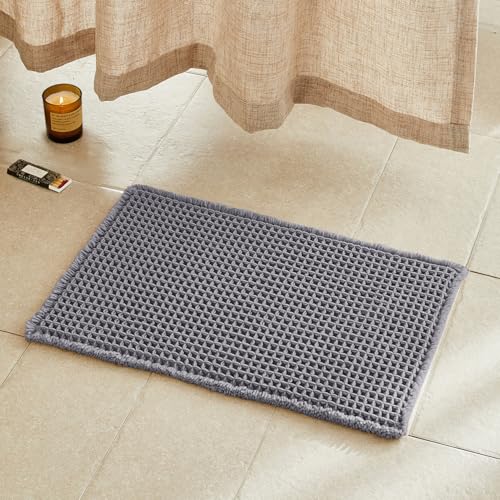 TYUU - Waffle Bath Mat, Boho Bathroom Rugs Non Slip Washable Super Absorbent Quick Dry Bath Mat Farmhouse Bathroom Decor, 24"x16" Grey