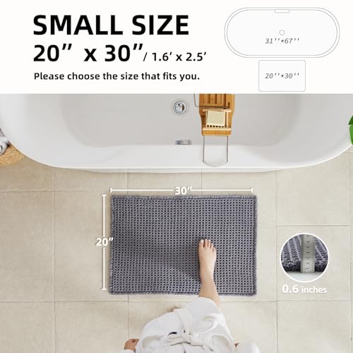 TYUU - Waffle Bath Mat, Boho Bathroom Rugs Non Slip Washable Super Absorbent Quick Dry Bath Mat Farmhouse Bathroom Decor, 30"x20" Grey
