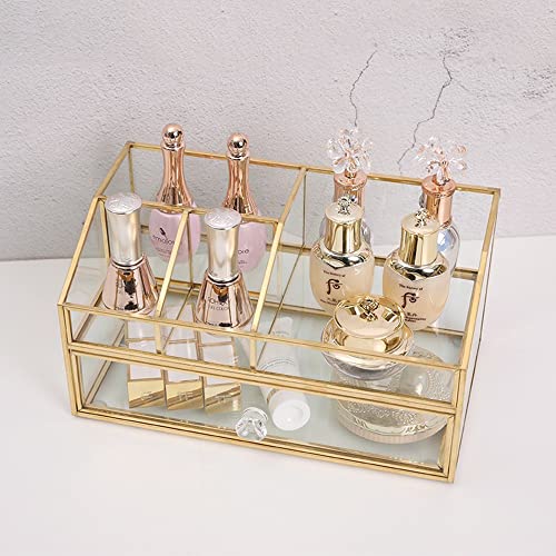 bofeiull - حامل فرش المكياج الزجاجي من تانجدي صندوق عرض منظم لفرش مستحضرات التجميل والمجوهرات انيق بنمط نورديك لطلاء الاظافر واحمر الشفاه ومحدد العيون لطاولة الزينة والحمام وغرفة النوم والمكتب