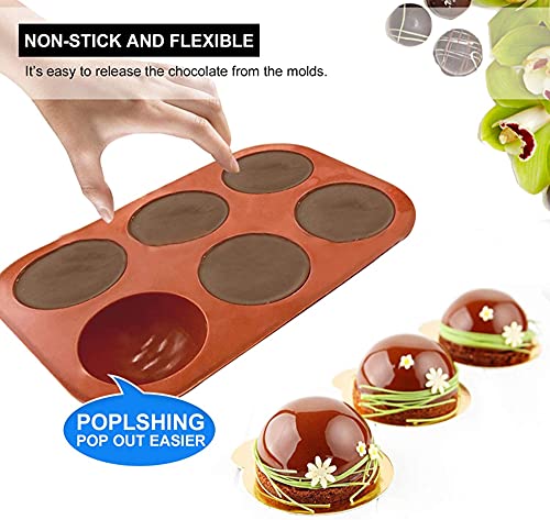 U/B - U/B Silicone Mold, 6-Hole Semicircular Candy Molds, Used to Make Hot Chocolate Bombs, Cakes, Jelly, Pudding, 3-Piece Baking Molds