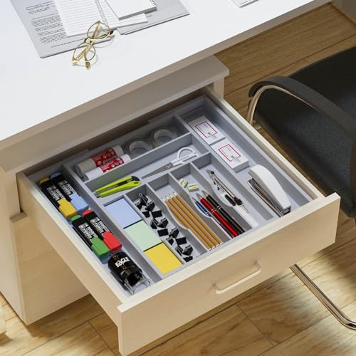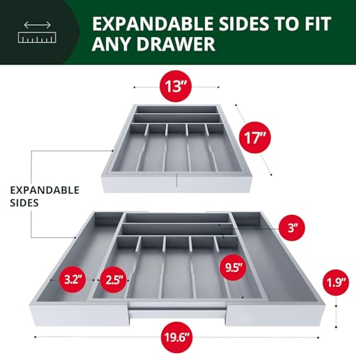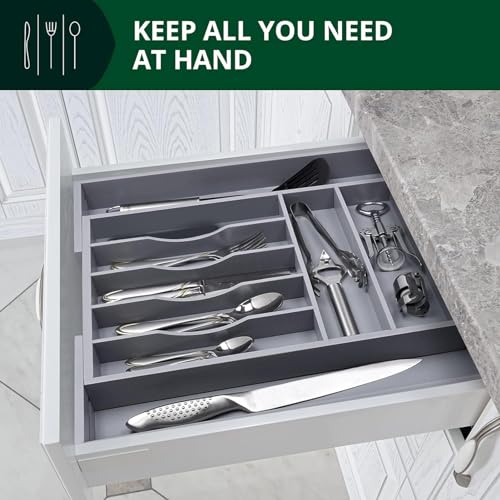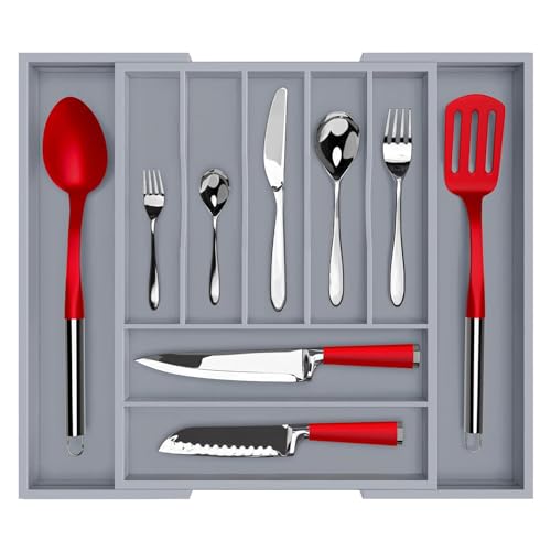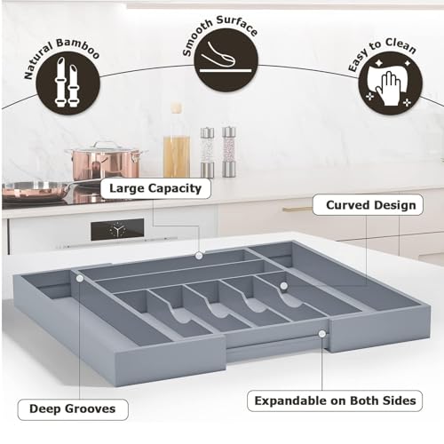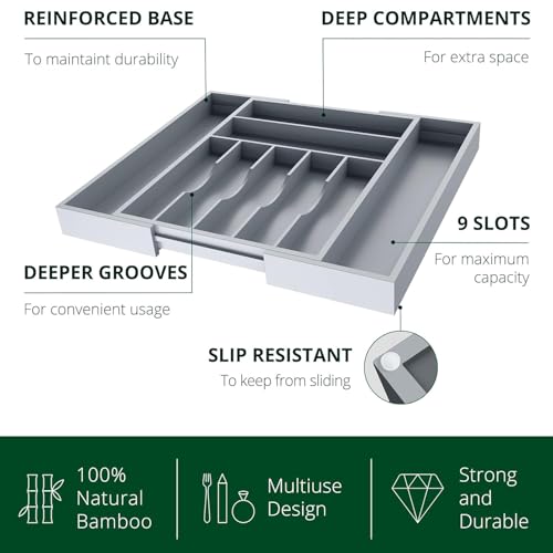 U-HOOME - U-HOOME Bamboo Kitchen Drawer Organizer - Expandable Silverware Organizer/Utensil Holder and Cutlery Tray with Grooved Drawer Dividers for Flatware and Kitchen Utensils (9 Slots, Grey)