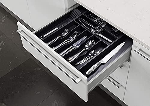 - BEAUTIFUL SILVERWARE ORGANIZER – This silverware organizer is made from beautiful water-resistant bamboo. It goes with almost any décor in your kitchen. The durable design allows you to clean the cutlery tray in only 5 minutes.