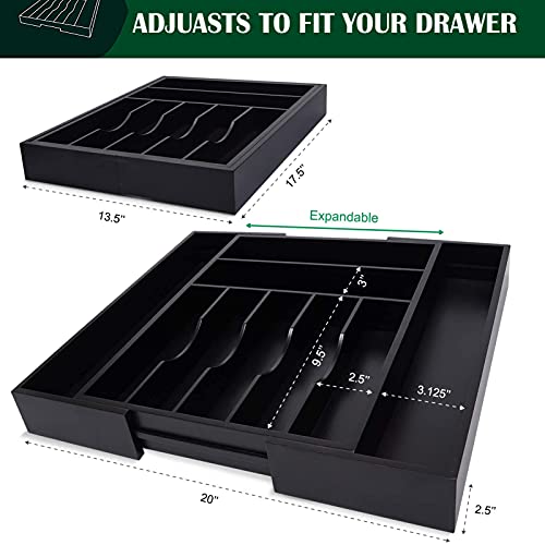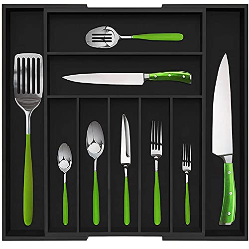 - EXPANDABLE & PRACTICAL – This silverware tray expands from 7 slots to 9 slots to easily store flatware, utensils and other kitchen gadgets. This bamboo expandable drawer organizer allows you to use it in the kitchen, office, bedroom or in any other room you want.