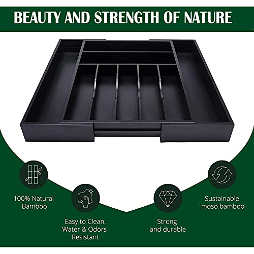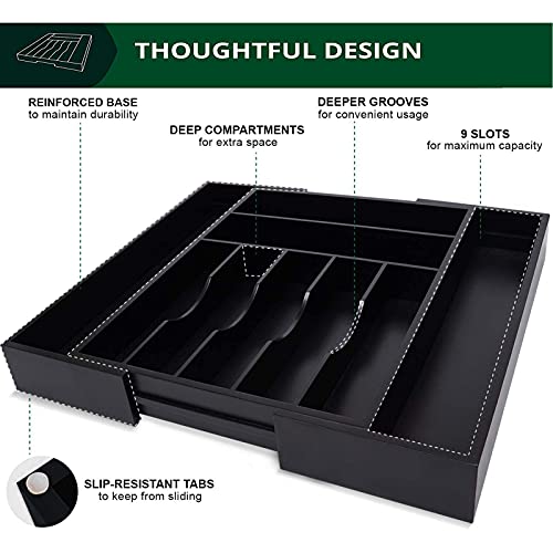 U-HOOME - U-HOOME Bamboo Kitchen Drawer Organizer for Utensil Holder , Expandable Silverware Organizer and Cutlery Tray,Drawer Dividers for Flatware and Kitchen Utensils (9 Slots-Black)