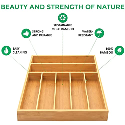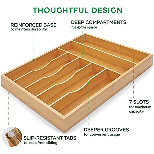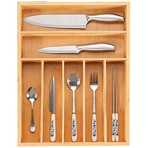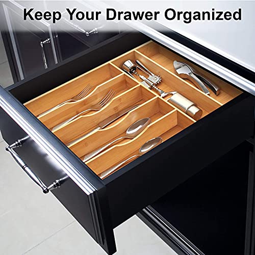U HOOME - U HOOME Bamboo Kitchen Drawer Organizer Tray for Flatware,Cutlery Tray for Silverware and Kitchen Utensils