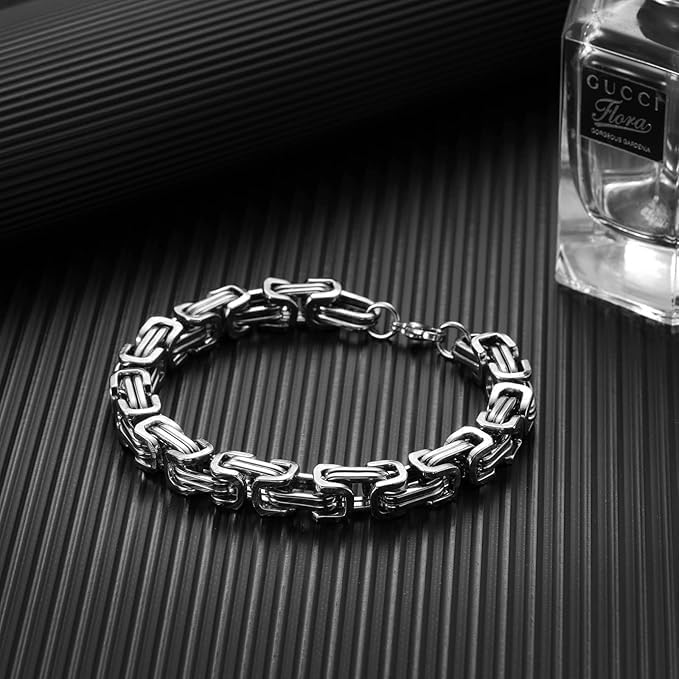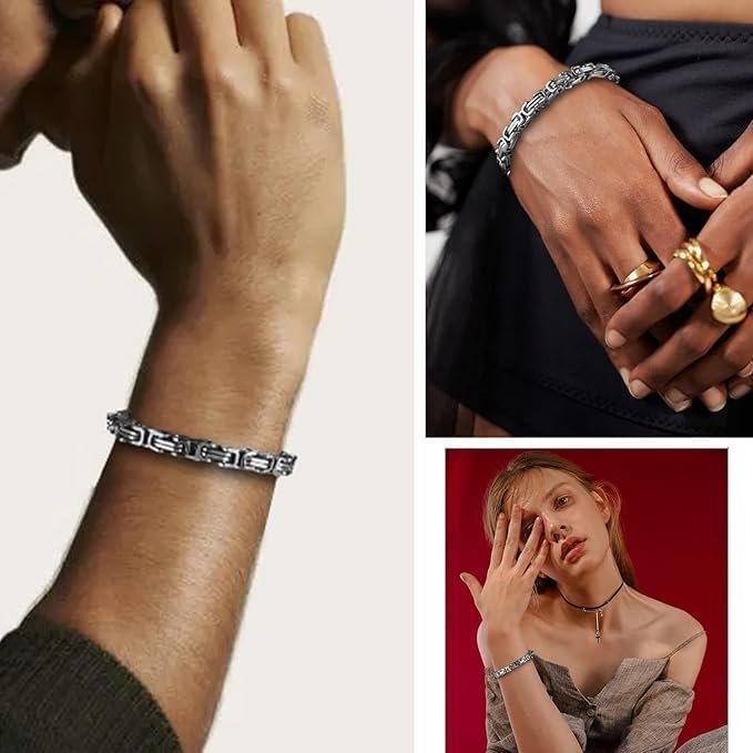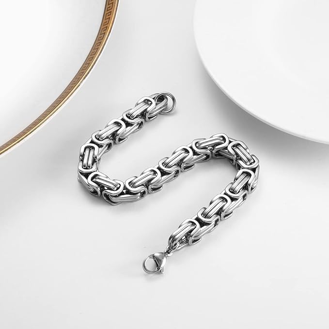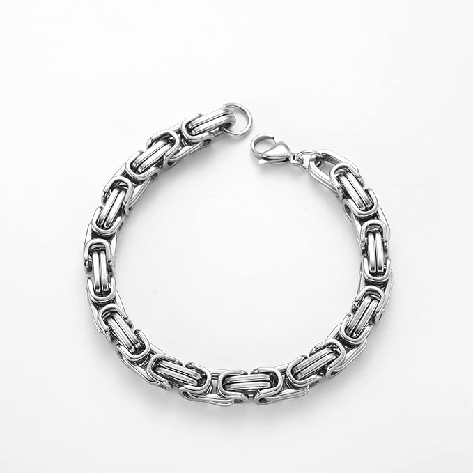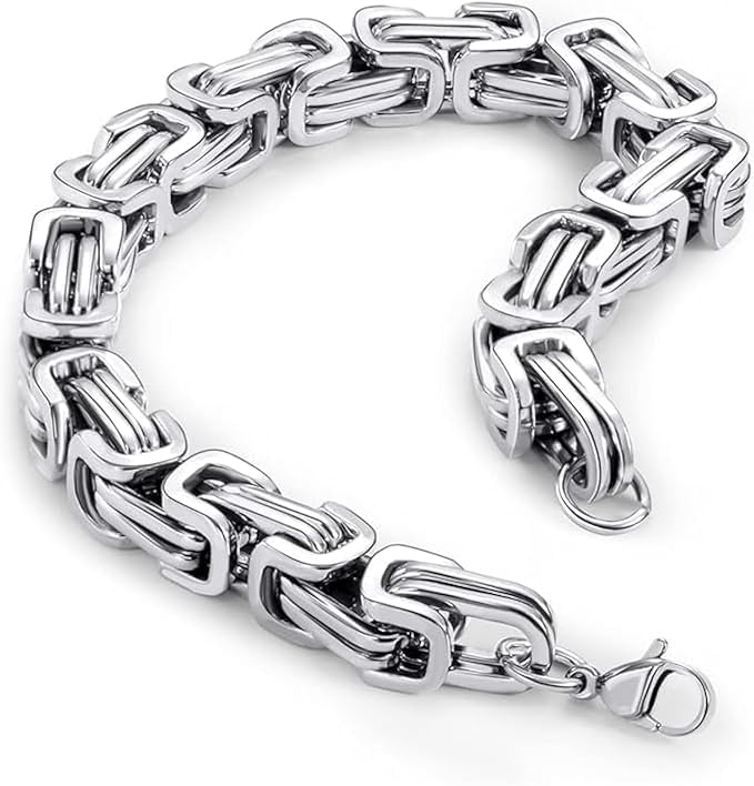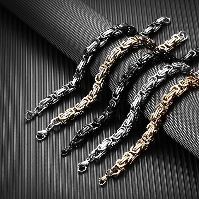USHOP - سوار بيزنطي مسطح من يو شوب ، من الفولاذ المقاوم للصدأ، سوار أنيق من سلسلة كوبية سميكة وثقيلة للرجال والنساء والأولاد، مقاوم للماء يناسب الجميع