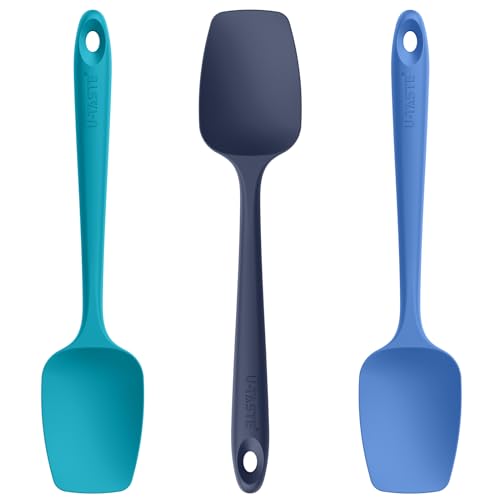 U-Taste - U-Taste Silicone Spoon Spatula Set: 480ºF Heat Resistant BPA-Free Flexible Rubber Spoonula, Nonstick Cooking Mixing Scooping Kitchen Baking Scraper Utensils Set of 3 for Pan, Pot, Bowl (Multicolors)