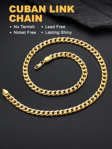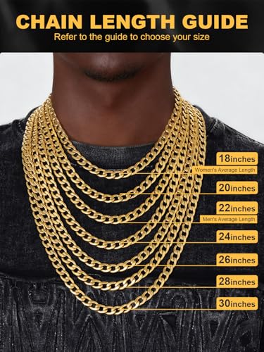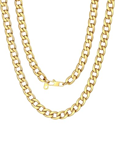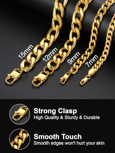 U7 - U7 Cuban Link Chain for Men Women, Circle Chain, Herringbone Snake Chain, Stainless Steel Gold Plated Fashion Chain Necklaces Length 18-30 Inch, Solid Heavy Chains, Width 9mm, 12mm, 15mm