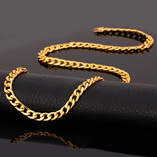 U7 - U7 Men's 18K Gold Plated Miami Cuban Chain Necklace with Gift Box, Medium, Copper