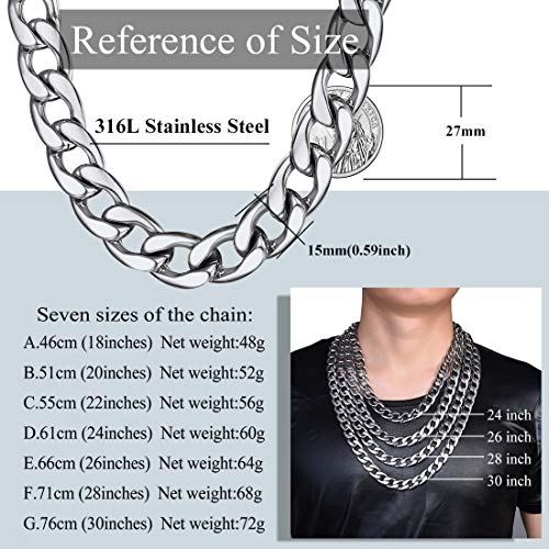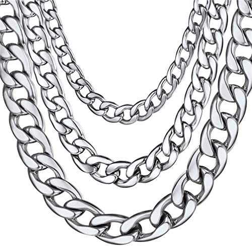 U7 - U7 Men's 9MM 12MM 15MM Chains 18K Gold Plated Miami Cuban Chain Necklace, Length 14/18/20/22/24/26/28/30 Inches Strong Curb Links-with Gift Box, Large, Stainless Steel