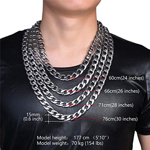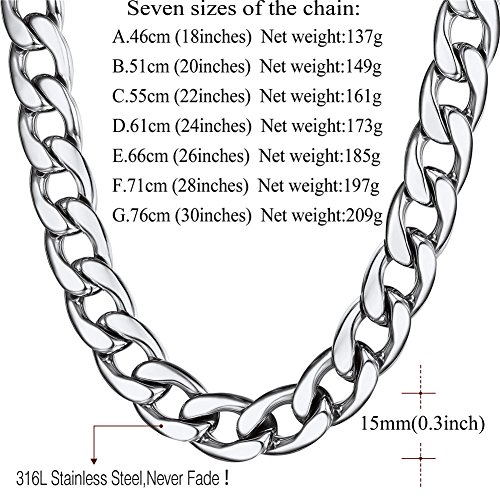 U7 - U7 Men Stainless Steel 15mm Wide Polished Strong Curb Link Miami Cuban Chain Necklace -18 Inch