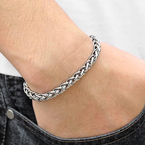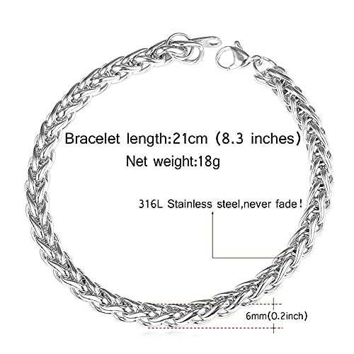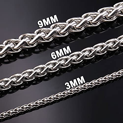 U7 - U7 Unisex Rope Wheat Chain 3Mm/5Mm/ 6Mm/9Mm Fashion Jewelry Stainless Steel Fashion Necklace/Bracelet/Chain Set 8.3 inches Bracelet - 6MM Wide Stainless Steel, 8.3 inches, Stainless Steel- multi