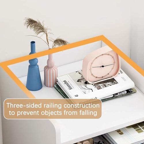 - 【Raising the Guardrail】: The guardrail is raised on three sides, demonstrating thoughtful design to prevent items from falling. This feature is especially useful during waking up or before going to bed, ensuring easy pick-and-place without the risk of items slipping off.