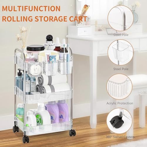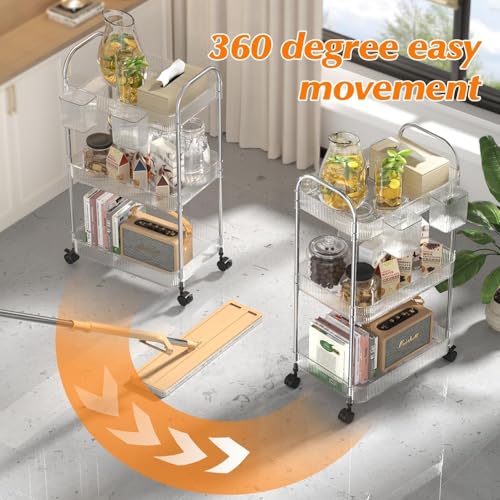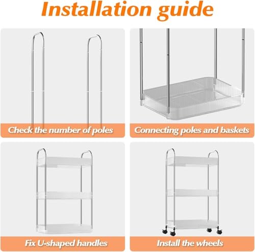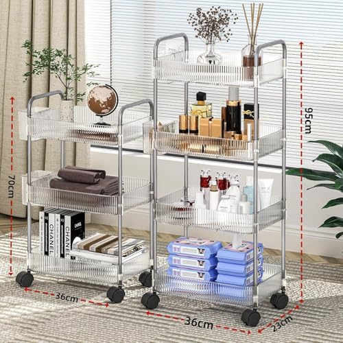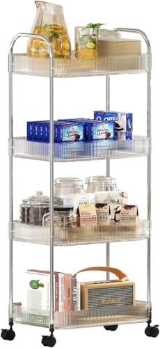 Uand home - Uandhome Clear Rolling Utility Cart, Acrylic Clear Mobile Storage Cart, Multifunction Movable Storage Cart Organizer with 3 Baskets, Trolley Storage Organizer for Kitchen, Bathroom, Bedroom (4 Tier)