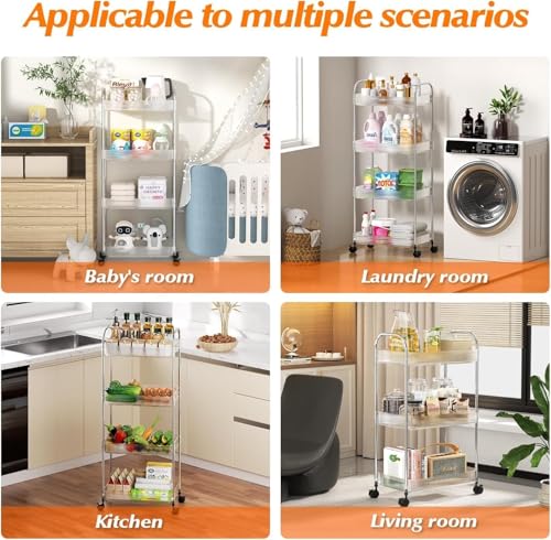 - MULTIFUNCTIONAL CART: Rolling storage cart can be easily moved anywhere in your home to help you organise your belongings. storage cart can be placed in the bedroom,kitchen, living room, toilet, baby room and other places. You can use it to place daily items, spices, toiletries, books,diapers and other things