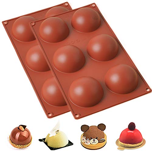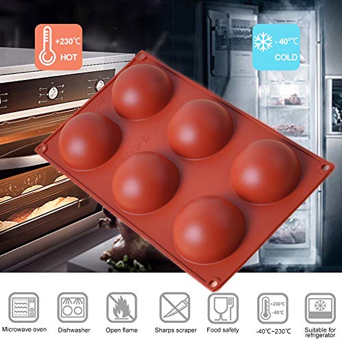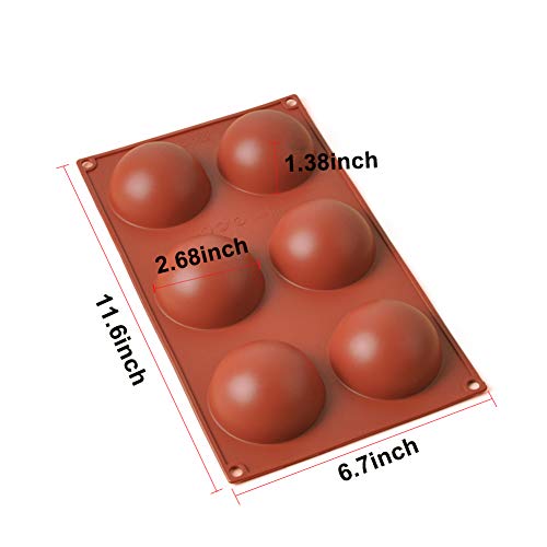Ubrand - Ubrand MaQue Large 6 Holes Semi Sphere Silicone Mold, Non-Stick Half Sphere Silicone Molds, 6 Holes Silicone Mold for Chocolate, Cake, Jelly, Pudding, Handmade Soap, Desserts, Dome Mousse (2 Pcs)