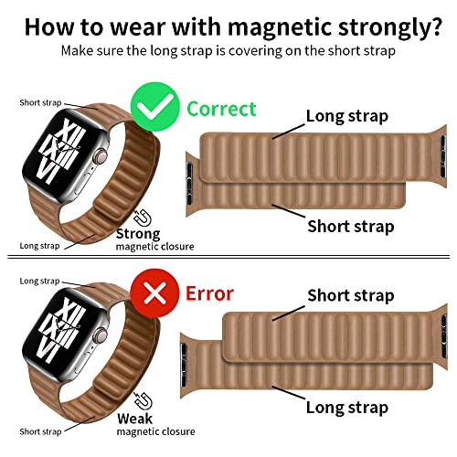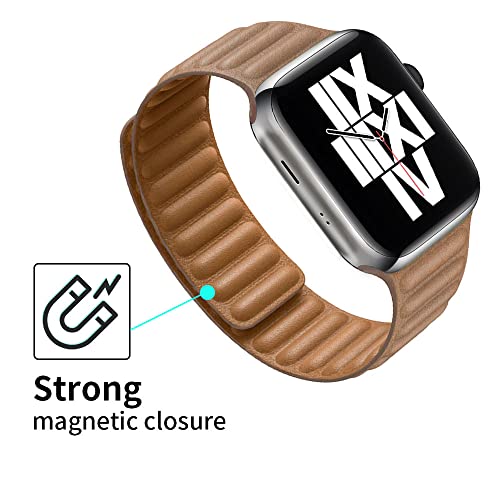 UCHUANG - UCHUANG Compatible with Apple Watch Ultra/Ultra2 Series 9 8 7 6 5 SE 4 3 2 1, Durable Magnetic Genuine Leather Strap for iWatch Band Size 38mm 40mm 41mm 42mm 44mm 45mm 49mm