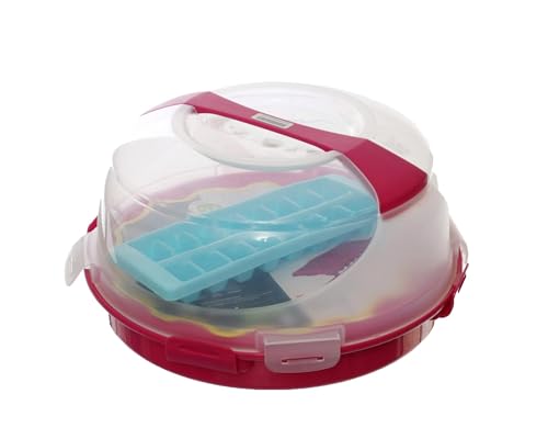 Ucsan - Plastic Round Cake Box Set 4-Pieces, 9.5 Liter Capacity, Fuchsia/Blue