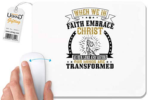 UDNAG - UDNAG White Mousepad 'Faith | When we in Faith Embrace Christ as Our Lord and Savior, Our Minds are Transformed' for Computer / PC / Laptop [230 x 200 x 5mm]
