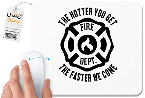 UDNAG - قاعدة ماوس بلون ابيض من يودناج بطبعة «Fire Fighter | The Hotter» للكمبيوتر واللاب توب مقاس 230×200×5 ملم مطاط بوليستر يو دي ان اي جي
