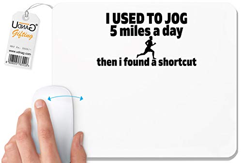 UDNAG - UDNAG White Mousepad 'Shortcut | i Used to Jog 5 Miles a Day Then i Found a Shortcut' for Computer / PC / Laptop [230 x 200 x 5mm]