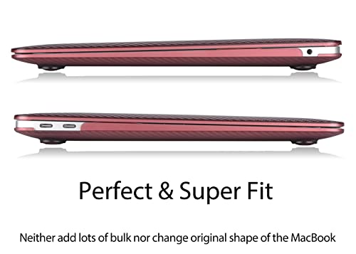 UESWILL - يو اي اس ويل حافظة متوافقة مع ماك بوك اير 2018-2021 M1 مقاس 13 انش موديل A2337 (M1) A2179 A1932 مع شاشة ريتينا تاتش اي دي، غطاء صلب من الياف الكربون، احمر مارسالا