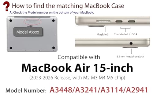 - ✅【Compatible with】- 2023 Release MacBook Air 15-inch with M2 chip, 15.3-inch (diagonal) Liquid Retina display / Touch ID. Model: A2941. Does not for other version MacBook.