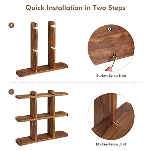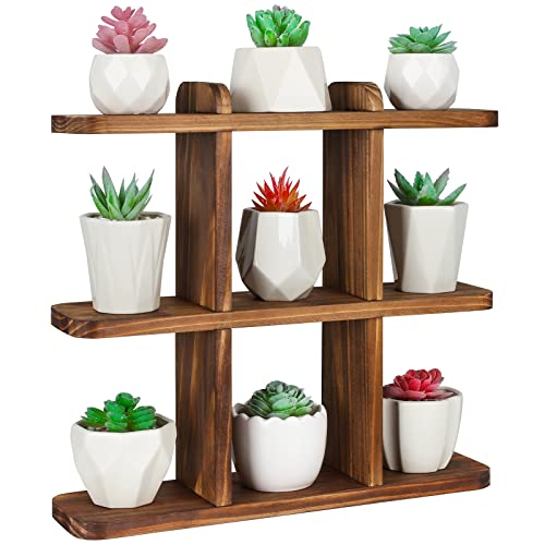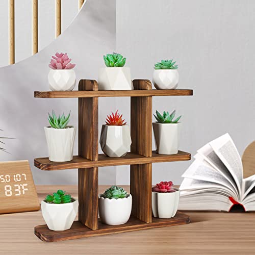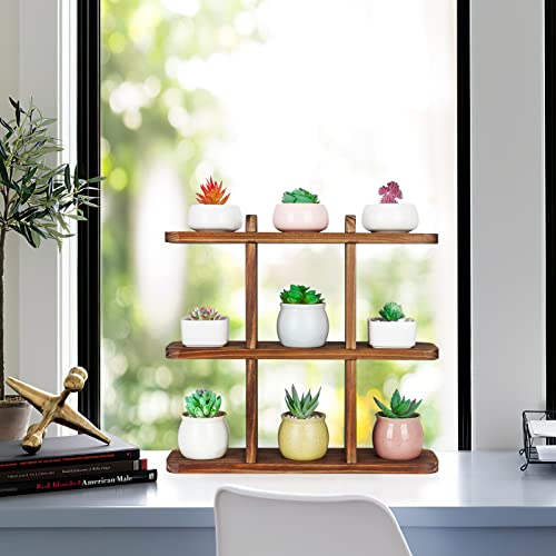 Ufine - Ufine 9 Pots Succulents Plant Stand Windowsill Plant Display Shelf Small Wooden Plant Stand for Desktop Carbonized Color