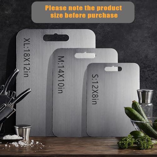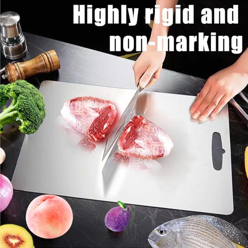 UFJEG - Titanium Cutting Board - Stainless Steel Cutting Board, Double-Sided Food Grade Titanium Cutting Boards for Meat Vegetable Fruit, Cutting Boards for Kitchen Outdoor Camping Meal Prep(12x8 IN)