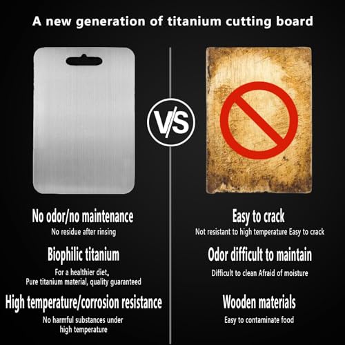 - Premium Craftsmanship: Crafted from superior titanium alloy, our Enhanced Titanium Cutting Board features dual-side electroplating for a brilliant shine, heightened wear resistance, and extended longevity compared to standard cutting boards